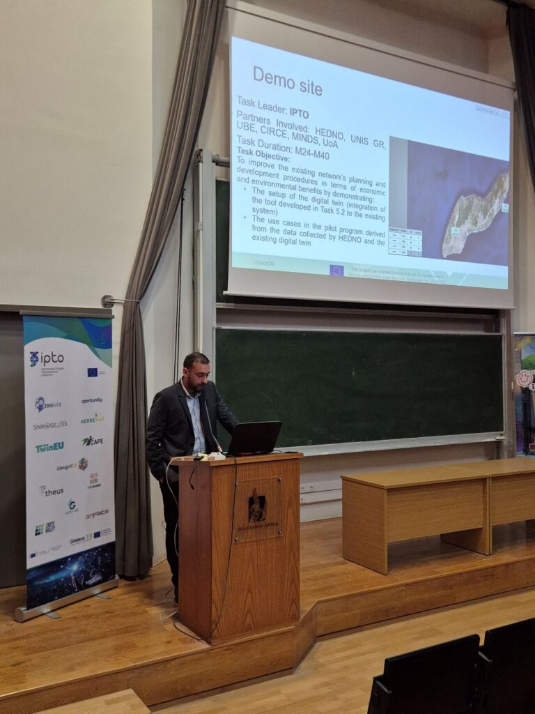 The SINNOGENES project was presented at the 17th Electrical and Computer Engineering Student Conference, held in Chania, Greece from April 17–19, 2026. Representatives from IPTO’s Research, Development and Technology Division presented the insights gained in the framework of the SINNOGENES European project with respect to the Ikaria Demo Site.